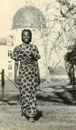 Les photos exposées à l’intérieur de la Bibliothèque nationale de Porto-Novo retracent quelques grands moments dans la vie de la chanteuse béninoise de 55 ans, née à Cotonou, la capitale économique du Bénin. On la voit, jeune et souriante, lors de son premier voyage en France, revendiquant déjà ses origines africaines, habillées en pagne.