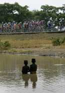 Kiba (Bur) et Appert (Fra – CEN) tentent leur chance en accélérant au km 45. Leur évasion ne dure qu’une trentaine de kilomètres, c’est-à-dire jusqu’au deuxième sprint intermédiaire, où doit se jouer un nouvel épisode de la conquête du maillot rose. La réaction de Viet lui permet de revenir provisoirement à égalité de points. Mais dix kilomètres plus loin, à Sapaga, Er Ragragui remporte le précieux point qui lui donne la tête du classement spécifique.