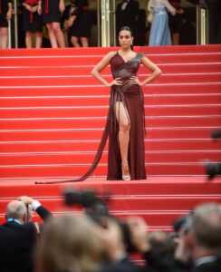 Plusieurs stars ont arpenté les marches de cette 74ème édition, pour le film « France », à l’image de Stella Maxwell, Hana Cross, l’ex-petite amie de Brooklyn Beckham, Kat Graham ou encore Georgina Rodriguez. La compagne de Cristiano Ronaldo a, une nouvelle fois, fait sensation. Elle a débarqué sur le tapis rouge avec une tenue confectionnée par Jean-Paul Gaultier. Une robe marron très sexy, mais assez particulière.
