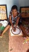 Il expose ses créations à Abomey, dans le palais du roi Kpengla où il travaille aux côtés des enfants.